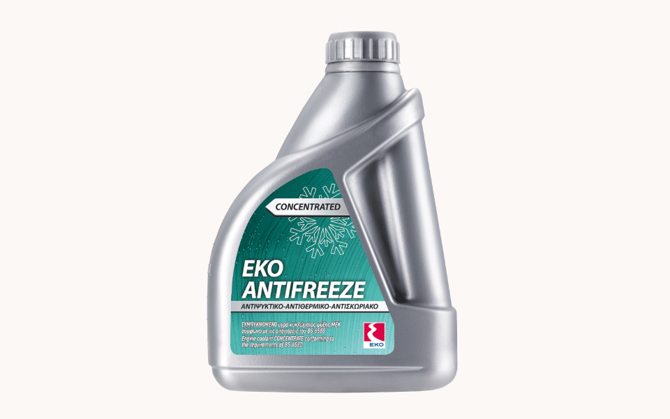 Το EKO ANTIFREEZE είναι συμπυκνωμένο αντιψυκτικό βάσης αιθυλενογλυκόλης, με επιλεγμένο πακέτο αναστολέων διάβρωσης χωρίς αμίνες, νιτρώδη άλατα και φωσφορικά άλατα. Το EKO ANTIFREEZE είναι κατάλληλο για οχήματα πετρελαίου και βενζίνης. Αραιωμένο με νερό στην κατάλληλη αναλογία, προστατεύει αποτελεσματικά το σύστημα ψύξης του οχήματος από τη σκουριά και τη διάβρωση καθ’ όλη τη διάρκεια του έτους, εξασφαλίζοντας παράλληλα αντιπαγωτική προστασία και προστασία από την υπερθέρμανση. Για αποτελεσματική αντιδιαβρωτική προστασία, το EKO ANTIFREEZE πρέπει να χρησιμοποιείται σε αναλογία τουλάχιστον 33% κατ΄ όγκο σε απιονισμένο νερό.
